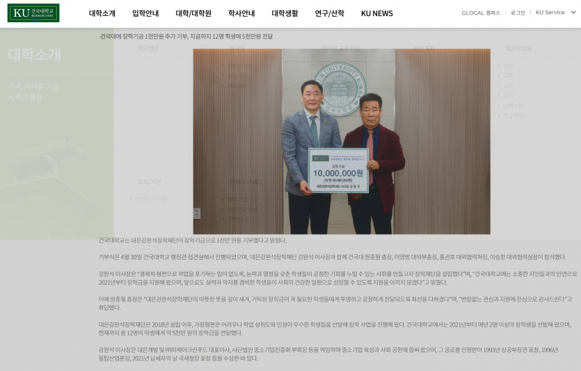 2025년 4월 30일 건국대학교 총장실에서 기부식이 진행되었습니다. 자리를 마련해 주신 건국대학교에 감사를 드립니다.