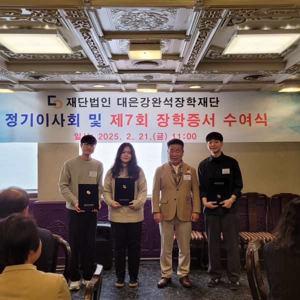 7회_2025년 대은강완석장학재단 제7회 장학증서 수여식 페이지 정보 작성자 대은강완석장학재단 댓글 0건 조회 739회 작성일 25-02-24 11:05 본문 대은강완석장학재단 제7회 장학증서 수여식입니다. 장학생 선발을 진심으로 축하 드립니다. 목록 댓글목록 댓글목록 등록된 댓글이 없습니다.